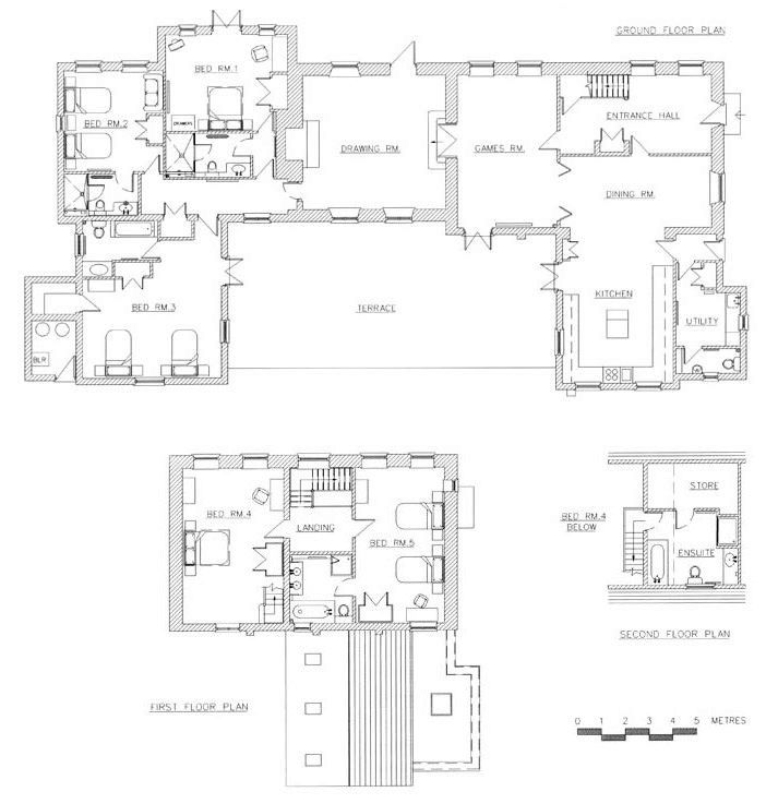 • Two double bedrooms (one ground floor, one first floor) and three twin rooms (two ground floor and one first floor).